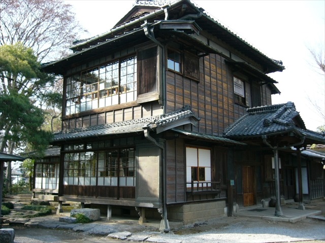 岡田記念館より少し離れたところにある別邸で、岡田家の当主の隠居所であったことから、いつしか翁島の名でよばれるようになったと言われています。巴波川沿いの荷揚場跡の広大な敷地に国登録有形文化財の住居と土蔵があります。 2階の座敷からは富士山、男体山、筑波山が望められる構造になっていることから、「三山閣」と呼ばれています。傘天井の浴室、床柱に吉野杉の絞り磨丸太、床板には紅葉の玉杢、違い棚には紫檀が使われているなど、隅々に最高の技術が駆使され、特に10mの欅一枚廊下は素晴らしく、当時の岡田家の隆盛を感じさせます。